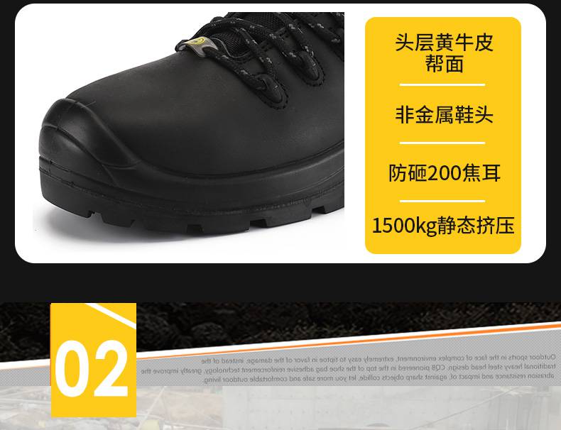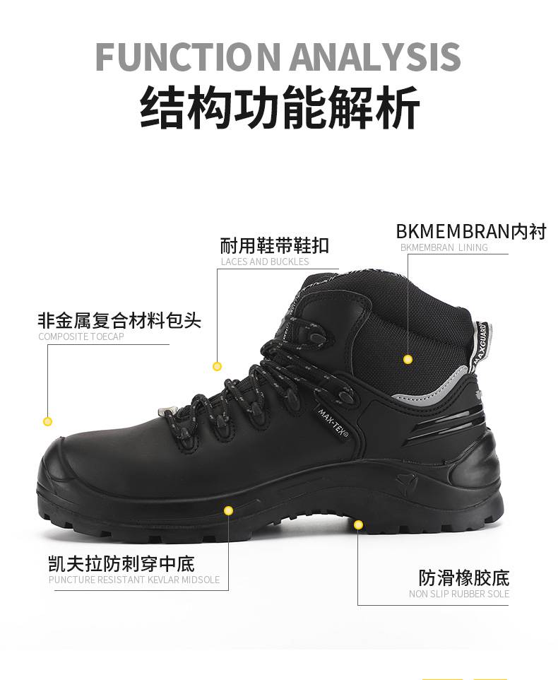 非金属复合材料防砸包头保护足趾,凯芙拉防刺穿中底,减轻重量增加柔软度;